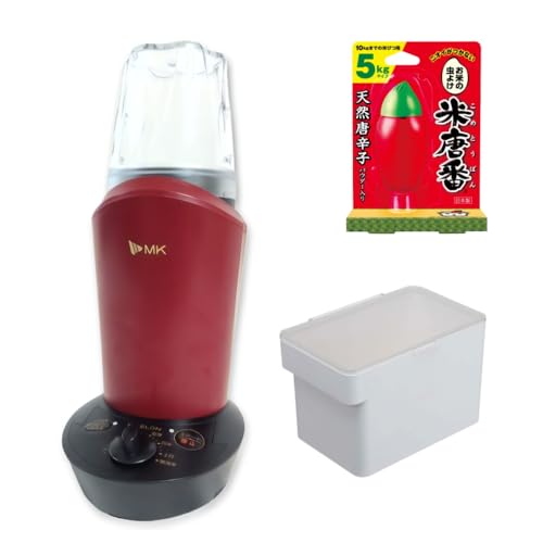 日々の食卓を支える小さな神器として選んだのは、エムケー精工 精米機 家庭用 ライスロンのワインレッドモデルです。セット内容は、小型精米機ライスロン1台に加え、米びつ容量5kgの計量カップ付き1個、さらに米びつ用防虫剤5kgタイプ1個という実生活に密着した構成。見た目の華やかさだけでなく、機能面の拡張性も魅力的に感じられます。